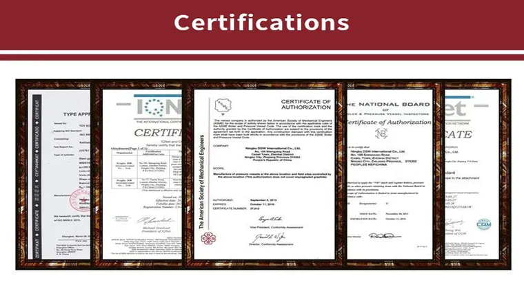Certifications ISO 9809‑1, EN ISO 9809‑1, TPED approved